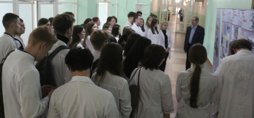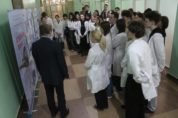 20 апреля 2026 года у экспозиции историко-документального выставочного проекта о строительстве Байкало-Амурской  Магистрали «БАМ», временно размещённой на 5-м этаже 1-го корпуса Дальневосточного государственного медицинского университета, заведующий сектором выставочно-издательской деятельности центра доступа к архивным ресурсам КГБУ «Государственный архив Хабаровского края», кандидат исторических наук Д.А. Ляхов совместно с отделом по молодёжной политике и воспитательной работе, кафедрой философии, кафедрой педагогики и психологии ДВГМУ провёл интересную познавательную экскурсию для студентов 119, 120, 207 и 208 групп лечебного факультета.