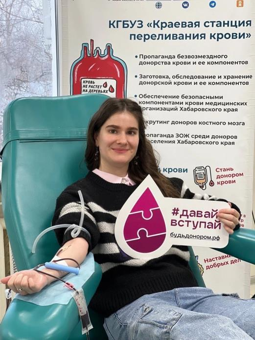В рамках акции студенты ДВГМУ не только сдали кровь, но и поддержали Всероссийский проект #ДавайВступай_Молодежь, а также поучаствовали в викторине #ДеньСтудента_Я_Донор!