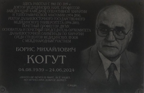 Начало II Дальневосточной, XI Региональной хирургической олимпиады (25 февраля-1 марта 2025г) предварило знаменательное событие - открытие памятной доски Почётному профессору ДВГМУ, основателю и почётному председателю оргкомитета Дальневосточной олимпиады по хирургии среди студентов медицинских вузов с международным участием Борису Михайловичу Когуту.